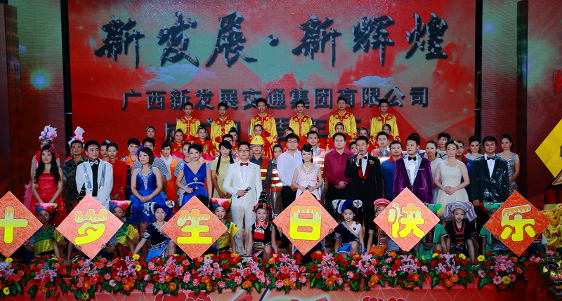 3月18日,“新發展?新輝煌”集團公司十周年慶典文藝匯演在廣西交通職業技術學院大禮堂舉行。自治區總工會、區直機關工委、國土廳國土規劃院等區直有關部門,自治區交通運輸廳各部門、直屬各單位,廣西交投集團、廣西建工集團、廣西建筑業聯合會、各大銀行等有關單位的領導,以及新發展交通集團職工代表1000多人齊聚一堂,共同慶祝集團公司成立十周年。