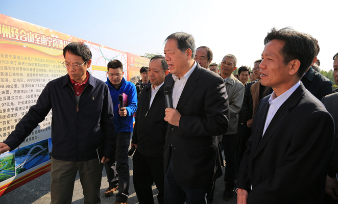 在柳州經合山至南寧高速公路(簡稱新柳南高速公路)開工現場會主會場上,集團公司黨委書記、董事長朱堅和向自治區人民政府副主席陳剛、自治區交通運輸廳副廳長梁毅等與會領導介紹了新柳南高速公路項目情況,以及集團公司目前承建的自治區重大建設項目鐘山至來賓、來賓至巴馬、融水至河池等3個縣縣通高速公路項目建設情況,朱堅和表示,集團公司致力于成為自治區黨委、政府最可信賴的交通基礎設施投資運營力量,全力以赴完成各重大項目建設任務。