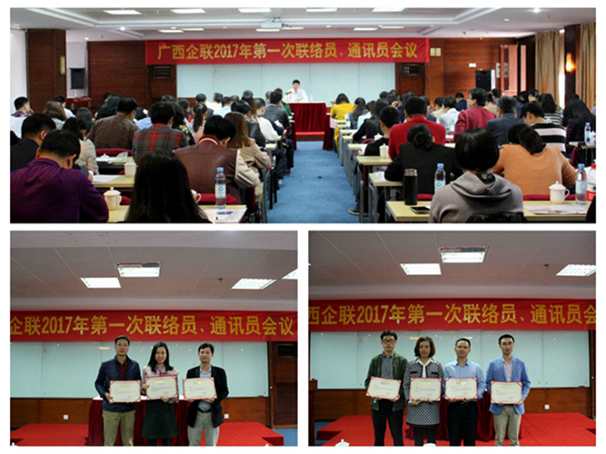 2月24日,廣西企業(yè)與企業(yè)家聯(lián)合會(huì)舉辦2017年第一次聯(lián)絡(luò)員、通訊員培訓(xùn)班,并對(duì)各會(huì)員企業(yè)宣傳通訊工作以及優(yōu)秀征文作品進(jìn)行了表彰。