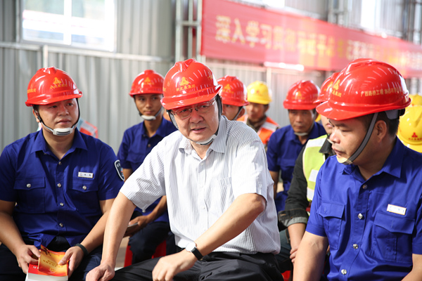 在作業(yè)一線,王躍飛主席結(jié)合企業(yè)實際情況,與現(xiàn)場員工及作業(yè)工人深入淺出的講解黨的十九大精神,讓黨的十九大精神在基層落地生根。王躍飛指出,黨的十九大對中華民族乃至每個老百姓的命運十分重要、關(guān)鍵,會議選舉出了以習近平總書記為核心的領(lǐng)導集體,確定了習近平新時代中國特色社會主義思想,確定了新的發(fā)展規(guī)劃。王躍飛表示,當前我國的奮斗目標是建設成為富強、民主、文明、和諧、美麗的社會主義現(xiàn)代化強國,我國的社會主要矛盾也已經(jīng)轉(zhuǎn)化為人民日益增長的美好生活需要和不平衡不充分的發(fā)展之間的矛盾,我們要對這些新論斷,新理念有清醒的認識。在宣講過程中,王躍飛用通俗易懂的語言對黨的十九大主要內(nèi)容進行了精彩的講解。