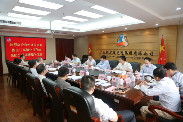 3月5日上午,自治區國資委副主任高旭,規劃發展處處長吳光、副處長陳家炎及第二監事辦相關人員一行6人到集團公司,就集團公司2017年投資計劃完成情況及2018年投資計劃進行調研。集團公司黨委書記、董事長朱堅和,黨委副書記、副董事長、總經理唐咸秋,副總經理李德智,總會計師鄧遠志及投資改革發展部、財務部主要負責人參加會見。