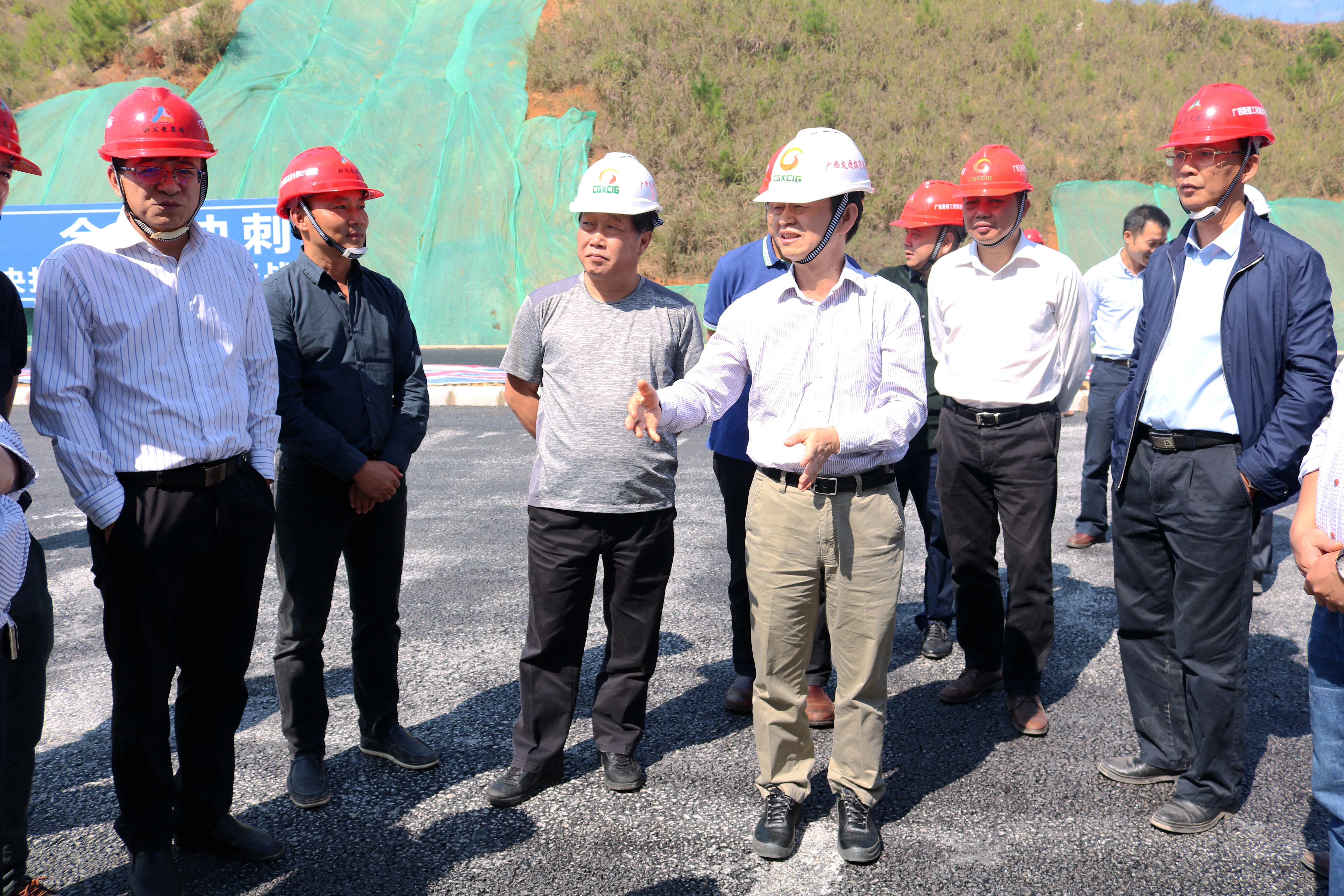 11月2日下午,自治區交通運輸廳副廳長王劼耘率隊到陽朔至鹿寨高速公路搶險復工工程第№TJ1合同段項目督查工程建設情況,北投集團副總經理、新發展集團總經理李定倫陪同督查。