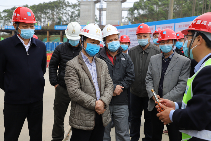 3月5日,自治區(qū)交通運(yùn)輸廳副廳長(zhǎng)王劼耘到大塘至浦北高速公路項(xiàng)目開(kāi)展防疫及復(fù)工復(fù)產(chǎn)工作情況調(diào)研。自治區(qū)交通工程質(zhì)量安全監(jiān)督站站長(zhǎng)陳津維、自治區(qū)高速公路發(fā)展中心主任周北、欽州市政府副秘書長(zhǎng)黃立和一同調(diào)研。